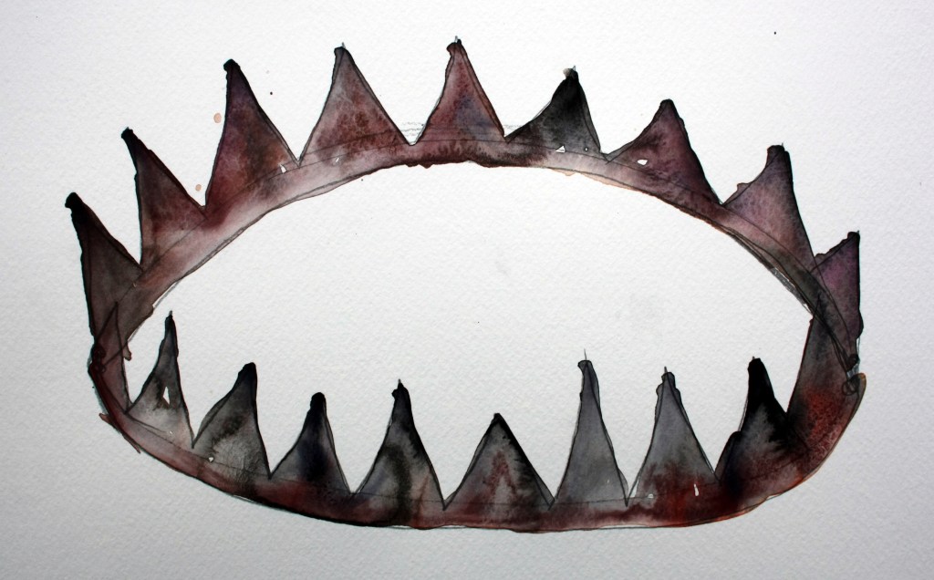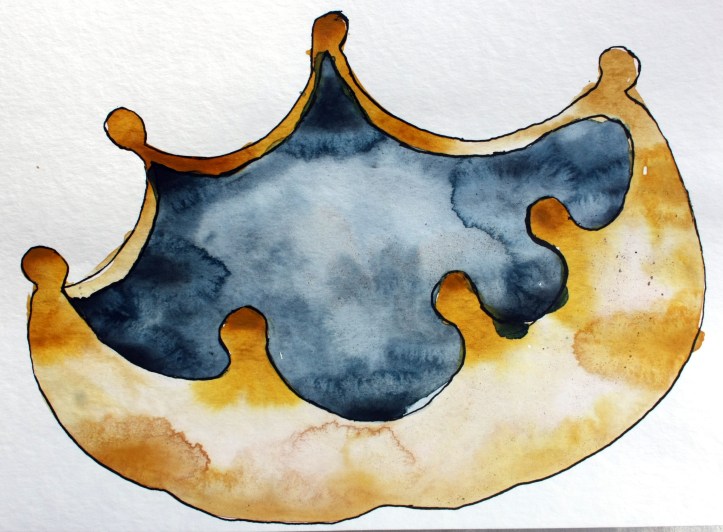 Anderthalb Jahre später, längst der Psychoanalyse entlassen, wollte ich mich eines Morgens, nach langen Wochen auf der Kippe zu einem depressivem Schub, des Positiven besinnen und sah in meiner Hand eine goldgelbe Schale wachsen. Erst jetzt sehe ich die Ähnlichkeit mit der rostigen Falle und wie wundersam die Verwandlung sich darin ausdrückt.