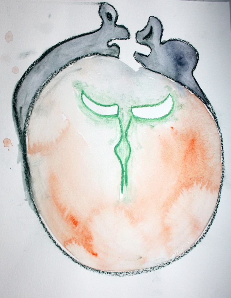 Während mittenmang sich die ergrünende Weiblichkeit mit Flügeln entfaltet, keifen über ihr noch zwei graue Griesgrame