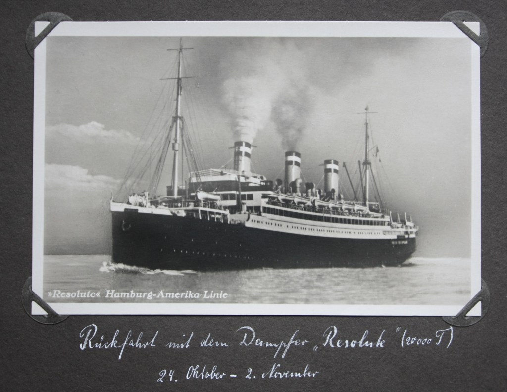 „Meine Amerikafahrt 24. Juli bis 3. November 1929“ schreibt die 16-jährige Liselotte in flüssiger Schrift mit weißer Tinte auf die erste Seite ihres mit dunkelbraunem Papier gestalteten Fotoalbums.