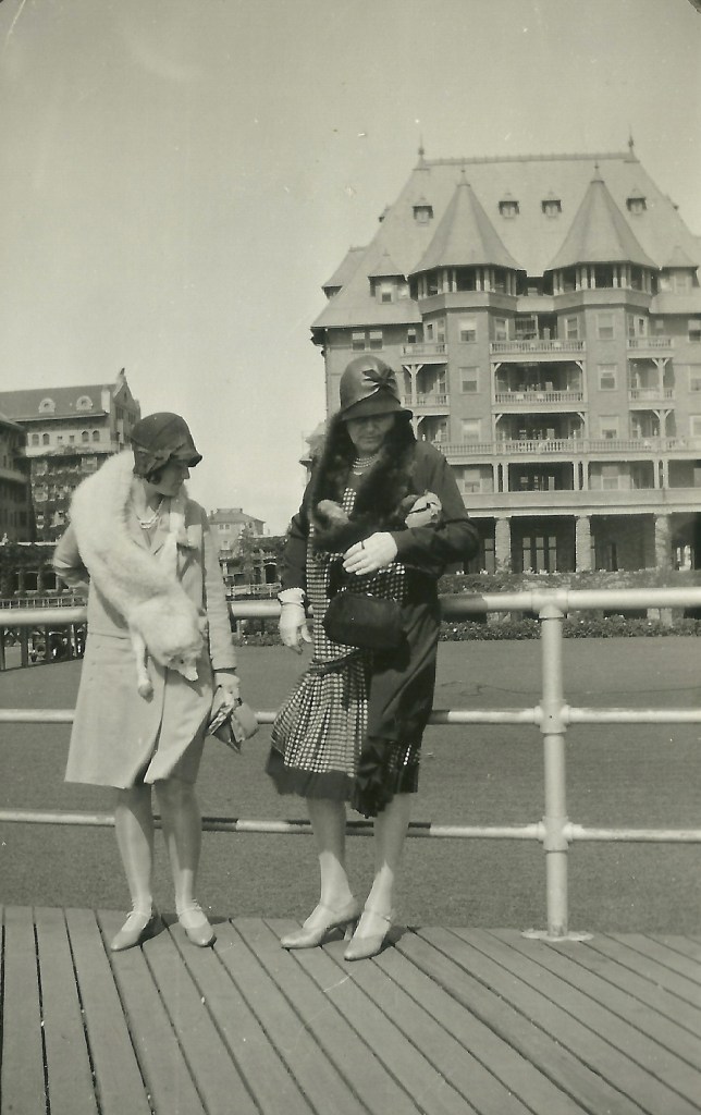 Von Atlantic City gibt es nur Fotos vor dem Marlborough-Blenheim Hotel, das von 1906 bis 1978 bestanden hat. Es wirkt, als wären sie nur für eine Übernachtung dort gewesen und schnell mal vors Hotel gegangen für ein paar „Selfies“, anscheinend bei windigem Wetter. Und dann noch eine kleine Spazierfahrt, Liselotte schreibt unter das Bild: „So läßt man sich auf dem „Boardwalk“ spazieren fahren!“.