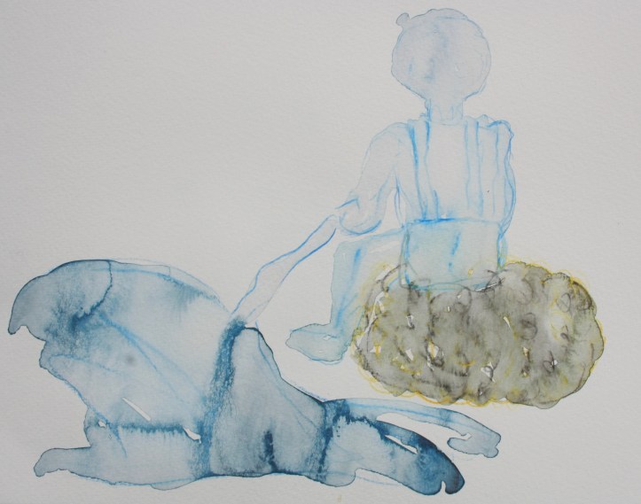 Und da ist er, der 5-jährige Junge in seinen hellblauen Lack-Lederhosen, sitzt auf einer Metastase und füllt meinen Lungenspalt mit Wasser aus seinem Puppen-Gartenschlauch, auf dass ich endlich merke, wie es um mich bestellt ist. Wieder einmal ignoriert er mich, aber er tut, was getan werden muss. Er bringt mit dem Hellblau, das am Ende Heilung signalisieren wird, den Krebs und den ganzen dazugehörigen Schmodder an die Oberfläche.