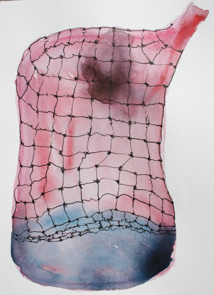 Und es ist der Rückenakt von Picasso, in den 80er Jahren wohl in jeder zweiten Frauen-WG als Poster zu finden, Symbol einer starken, kräftigen Frau, die sich nicht zur Schau stellen muss, um schön zu sein, allerdings gespiegelt, wie er sich in meiner Erinnerung gedreht hatte. Ein sehr individuelles, aber doch tausendfaches Selbstbildnis meiner weiblichen Generation. Und genau das macht die schwarz-gefleckte Zerstörung besonders schmerzhaft. Als ich es gemalt hatte, bin ich mehrere Nächte lang, ein Zimmer von diesem Bild entfernt, im Bett gelegen und habe es innerlich gesehen auf dem Fensterbrett, neben Alpenveilchen und gelb-randigem Bogenhanf. Es hatte einen Sog, schmerzhaft, aber auch beruhigend in der tiefen Erkenntnis, einen Ausdruck gefunden zu haben für die Krankheit.