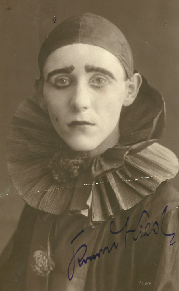 Aus dieser Zeit stammt dann wahrscheinlich auch dieses Foto, das ihn als sehr traurigen Pierrot zeigt: