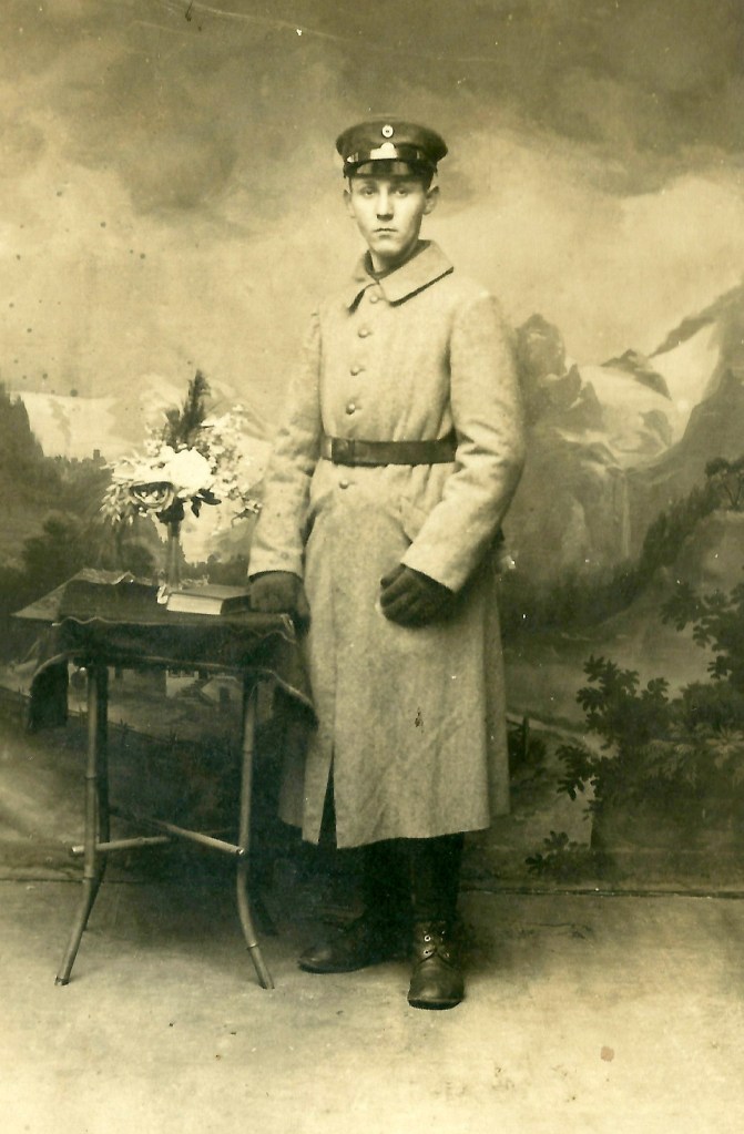 Beim Durchblättern der historischen Kartons gewinne ich den Eindruck, dass Konrad derjenige aus meiner Verwandtschaft ist, der am ehesten einer der jungen Soldaten hätte sein können, die ja alle angeblich 1914 nicht schnell genug in den Krieg ziehen konnten. Ganz so schlimm war es allerdings nicht, freiwillig hat er sich nicht gemeldet.