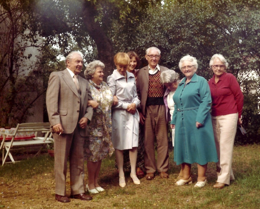 Und da sind wir dann zusammen auf einem Bild, am 75. Geburtstag meiner Oma Luisl, hier die zweite von rechts. Konrad hat es in die Mitte des Bildes geschafft und lächelt etwas milder im zivilen Alter und direkt links davon spitze ich ins Foto, 13 Jahre bin ich da alt. Ich erinnere mich, dass ich mich in seiner Gegenwart sehr wohl gefühlt habe, er war mir auch zugewandt und fragte mich auch mal was, immer mit freundlichem Interesse.