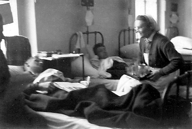 Ich habe diese zwei Fotos von Willi im Lazarett und dachte immer, die wären aus dem 1. Weltkrieg, vor allem, weil aus seiner Kriegsrolle ersichtlich ist, dass er im Winter 1917/18 mehrere Wochen in verschiedenen Lazaretten untergebracht war.