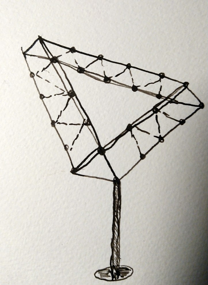 Meine Mutter hatte ein komplexes Dreieckssystem errichtet, das sich mir erst im Laufe der Therapie erschloss und das Bild einer fliegenden Konstruktion, zusammengesteckt aus Stahlstangen wie für ein Gerüst, ein Dreieck im Großen, aber auch die Querstreben zur Stabilisierung bilden wieder Dreiecke, begleitet mich seitdem. Zur Zeit hat es sich in ein Gerüst gewandelt, an das viele bunte, flatternde Tücher gebunden sind. Ich kann darin munter herumklettern und es gibt mir Halt davor, in die darunter befindliche dunkle Tiefe zu stürzen. Das ursprüngliche Dreiecksgerüst war anders, in das war ich eingespannt, zur Bewegungslosigkeit verdammt, als wäre ich auf ein mittelalterliches Folterrad gespannt.