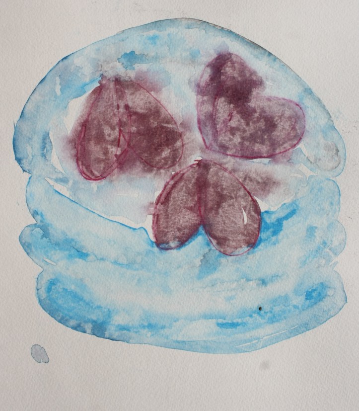 Immer noch im Zirkusrund: Ich setze mich im Schneidersitz in die Sägespäne, spiele gedankenverloren mit den Fingern drin rum, wartend auf die beiden, mit denen ich das Kleeblatt vollenden kann. Wer kann das sein? Meine Mutter und meine Schwester – natürlich. Aber es ist die ruhige, schwarzfreundliche Mutter, die sich in letzter Zeit gerne in meinem Zwischenreich herumtreibt und Eva ziert sich, will bei „so einem Quatsch“ nicht mitmachen und setzt sich dann doch dazu. Das bin ich, ich die Schwester, die Frau, die auch mal sticheln kann und ich, die Mutter. Das Kleeblatt wandelt sich in ein hellblaues Aufblas-Planschbecken, wir sitzen drin und es fängt an, zu schweben.