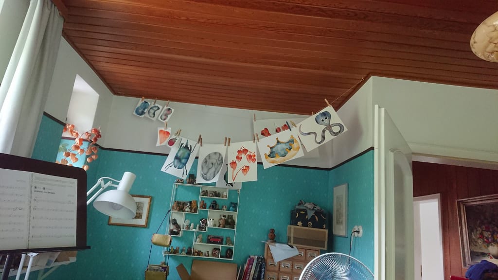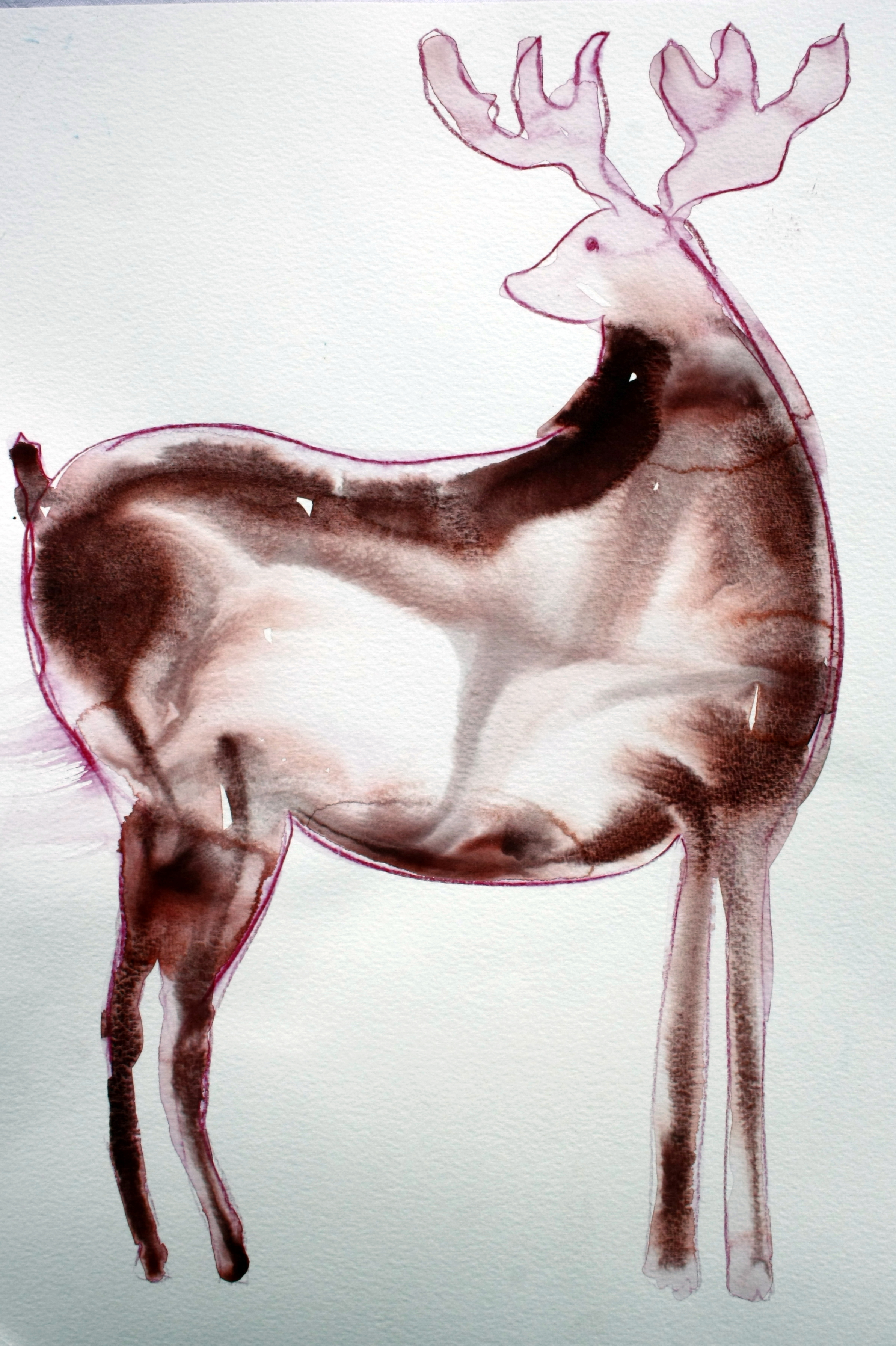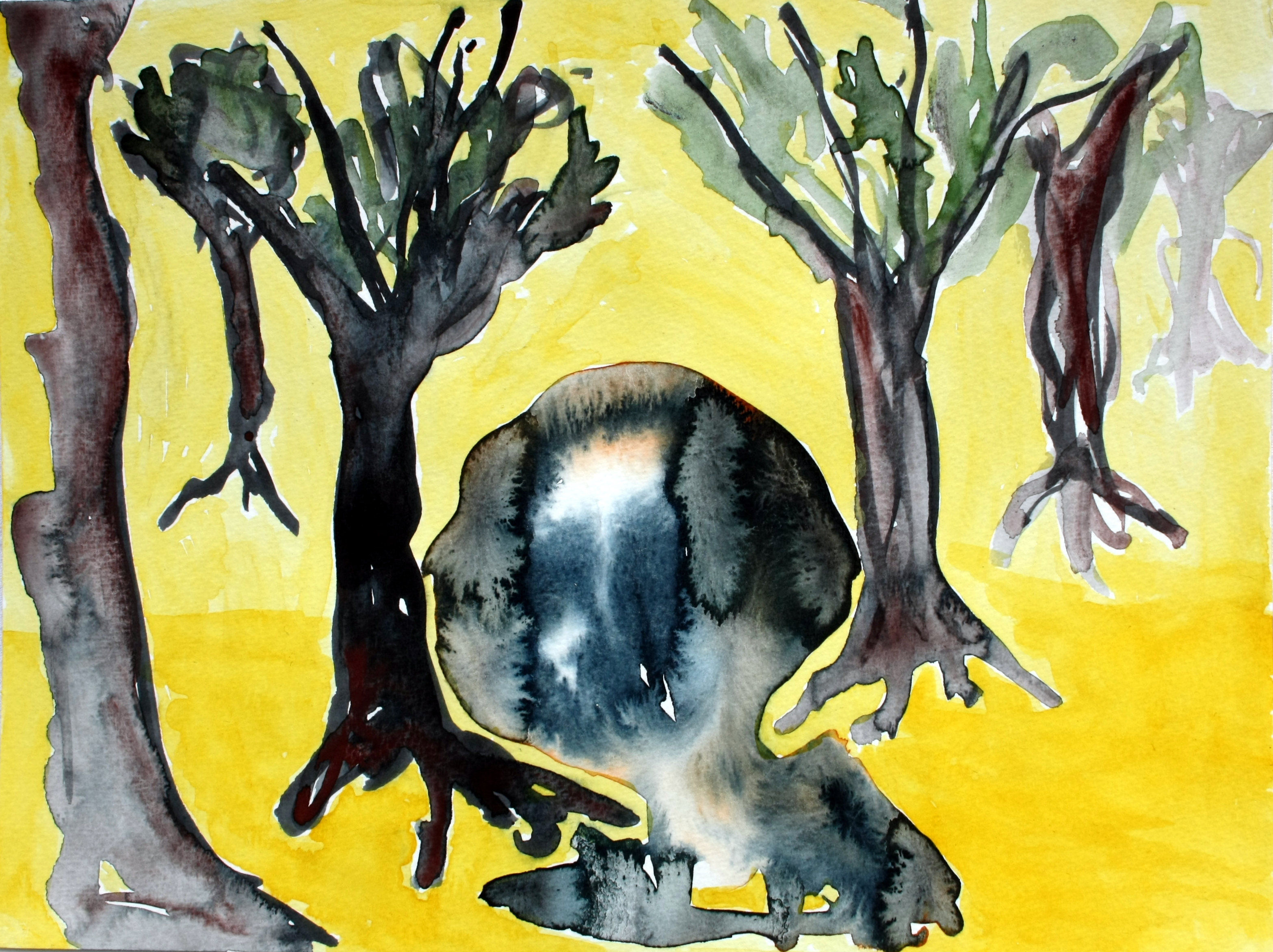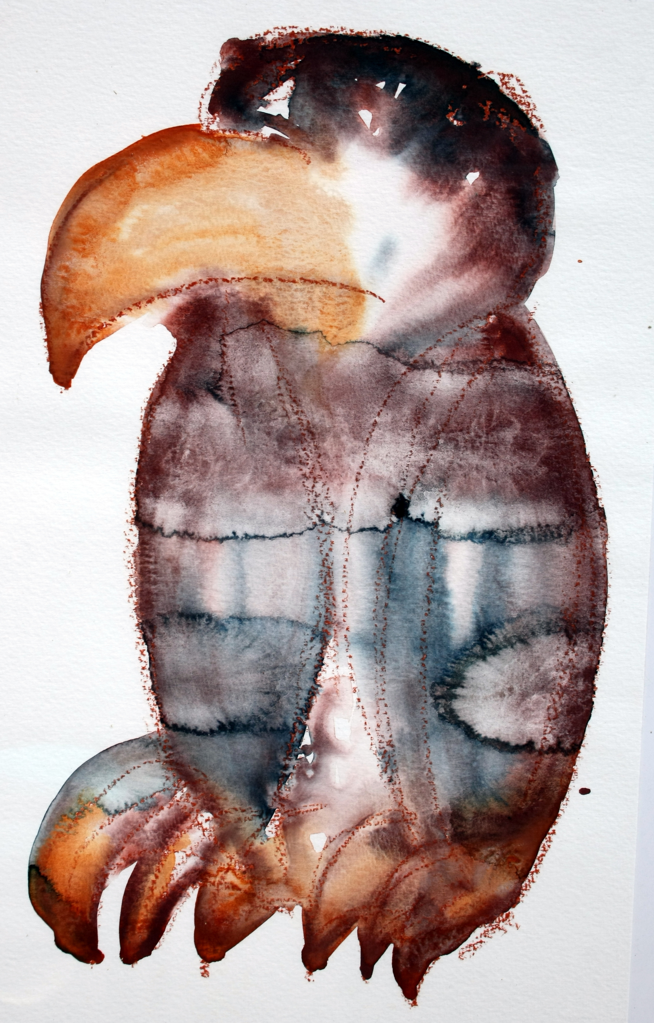 Ich kann auch Serie! Beziehungsweise bleibt mir nix anderes übrig, weil die Bilder ja schnelle Würfe sein wollen. Jedenfalls bisher, das könnte sich ändern, wenn ich im Radierkurs voranschreite, das erfordert auf einmal Genauigkeit und Präzision statt einfach aus dem Pinselbecher drauf los schütten. Mehrere Versuche, bis eine Version dabei ist, mit der ich mich…