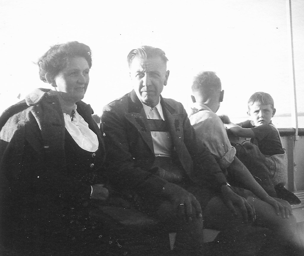 Hier ist Onkel Willy, Gustls älterer Bruder, der ja hier mittlerweile seine eigene Seite bekommen hat. An heißen Sommerwochenenden flüchteten die Städter gerne nach Obermenzing ins schattige Grün des Karwinkelgartens. Dieses Foto ist vermutlich von 1941, links Willy mit dem Akkordeon und rechts Gustl, kaum bekleidet bei der Hitze, aber nicht ohne seine Filzpantoffeln, die es auch im Laden zu kaufen gab. Die seltenen Größen haben das Ende des Geschäfts jahrzehntelang in unserem Keller überlebt.